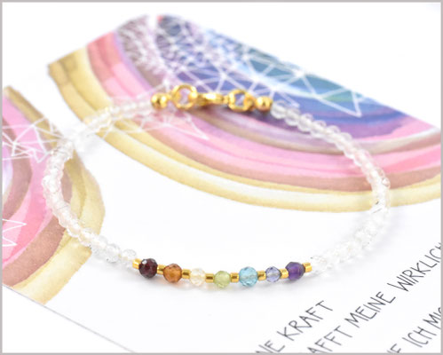Amethyst, Iolith, Apatit, Peridot, Citrin, Karneol, Granat sind die Edelsteine der 7 Chakren. Sie sind die