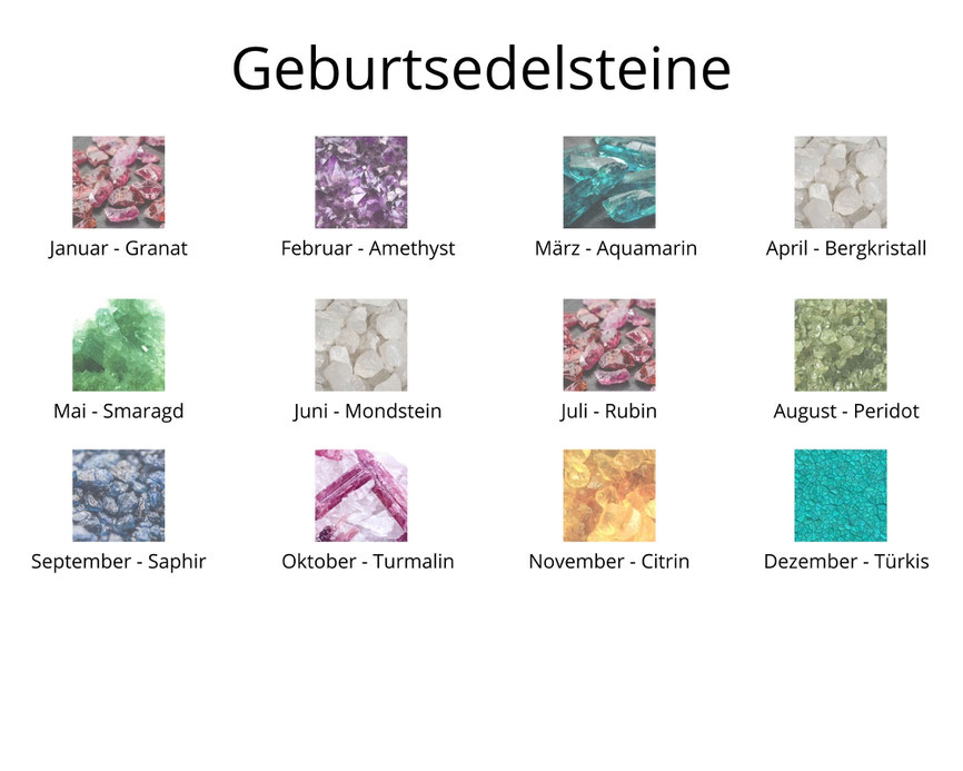 Ein Geburtsstein ist ein bestimmter Edelstein,der Menschen glücklich machen kann, heilt oder beschützt. Der Geburtsstein kann dann mit den Träger*innen als eine Art