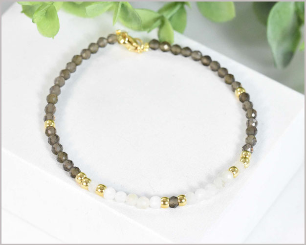 Mondstein Rauchquarz Mix Edelsteinarmband 3 mm mit Goldperle