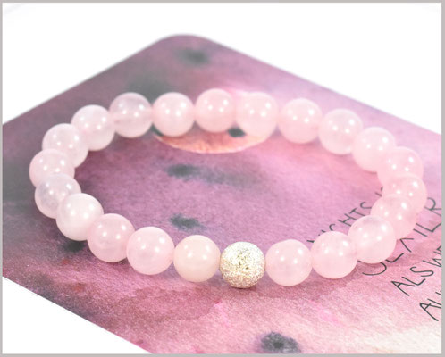 Der Rosenquarz verleiht dir innere Stärke und Mut und schützt dich somit gegen Ängste und Depressionen. Du bist sanft zu dir und verweilst in innerer Harmonie.
