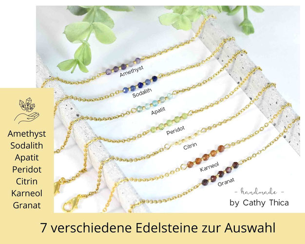 Handgefertigtes filigranes Edelstein Armband. Wähle unter verschiedenen Edelsteinen aus.