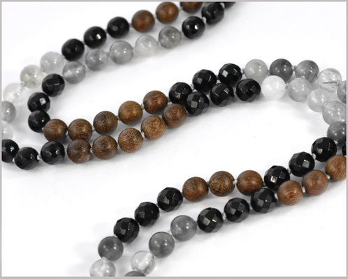 Diese Malakette habe ich kombiniert aus 2 verschiedenen Achat Edelsteinen & Sandelholz Perlen, Guru Perle & Quaste