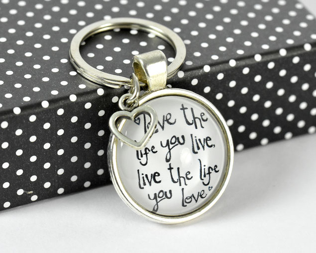 Schlüsselanhänger mit diesem Statement: "Love the life you live, Live the Life you love"