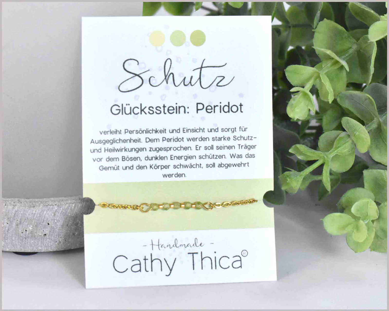 Dieses filigrane Glücksarmband "Schutz" mit einem Peridot Edelstein ist ein wunderschönes Geschenk um Herzensmenschen, die beste Freundin, Mutter,